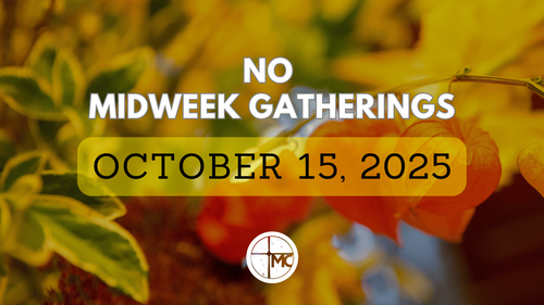 There will be no mid-week gatherings this Wednesday, October 15, 2025, at The Ministry Center campus.