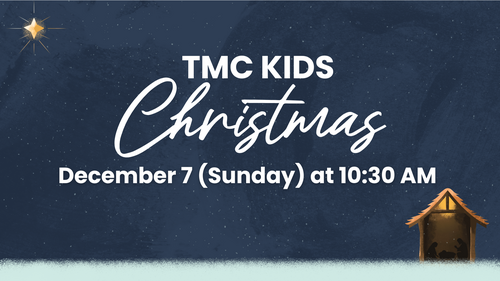 Join us Sunday, December 7 at 10:30 AM for a special TMC Kids Christmas Program during our morning worship. Our TMC Kids will lead us in celebrating the true meaning of Christmas through songs, scripture, and a simple message that points us to Jesus.