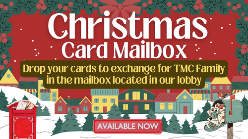 TMC family. One of our favorite Christmas traditions is exchanging cards and sharing joy with one another. Our Christmas Mailbox is now open in the foyer. Drop your cards in and bless someone with a note of love and encouragement this season. Let’s fill it with Christmas cheer.