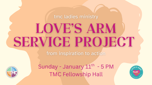 Join us on Sunday, January 11 at 5 pm in the TMC Fellowship Hall for a special Ladies Ministry service project benefiting Love’s Arm.