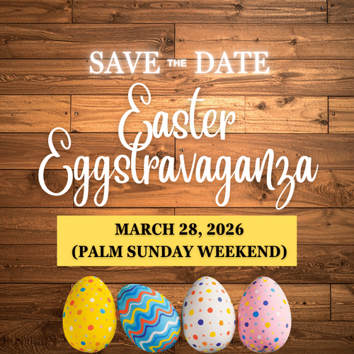 We are excited to announce that Easter Eggstravaganza will return in 2026 on a new weekend. This year, our community wide Easter Eggstravaganza will take place on Saturday, March 28, 2026, during Palm Sunday weekend.